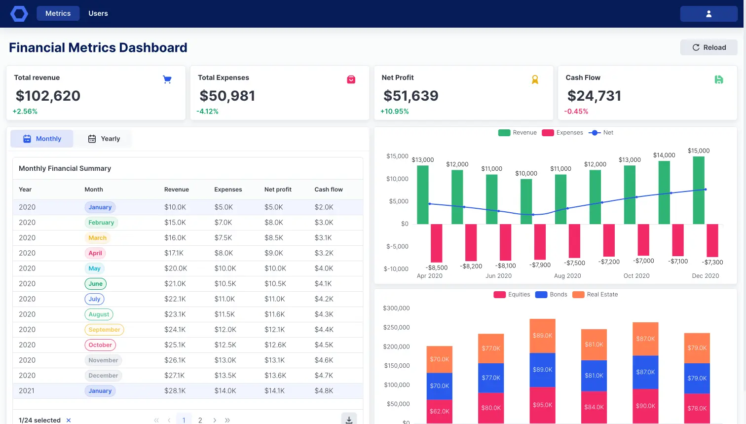 Instead of manually configuring reporting tools or subscription trackers, RevOps teams can describe their needs in plain English, and UI Bakery’s AI generates apps for monitoring revenue, tracking invoices, and visualizing customer churn. This makes it a strong enabler for companies that want flexible internal tools without the overhead of custom coding.