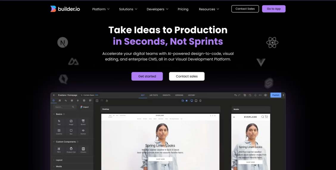 Builder.io – it’s a platform that lets teams visually create pages while developers control the underlying code and structure.