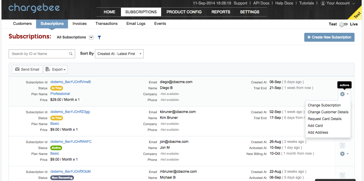 - CRUD interfaces for invoices, payments, and subscriptions.