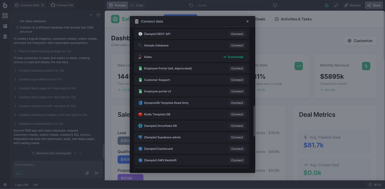 - An AI agent like UI Bakery to turn data into usable internal apps
